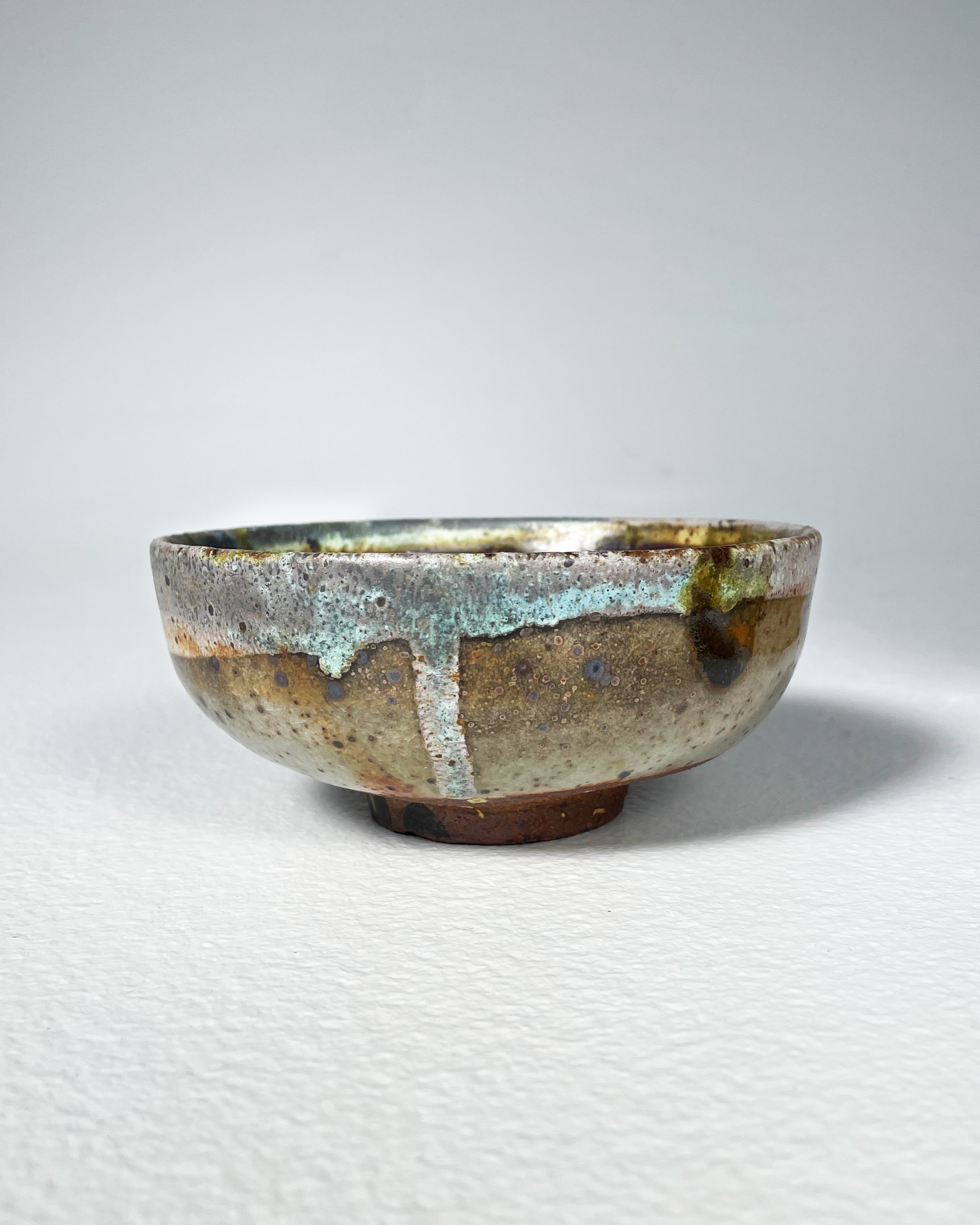 Bowl, Stoneware with high fire glazes, black slip, and red iron oxide